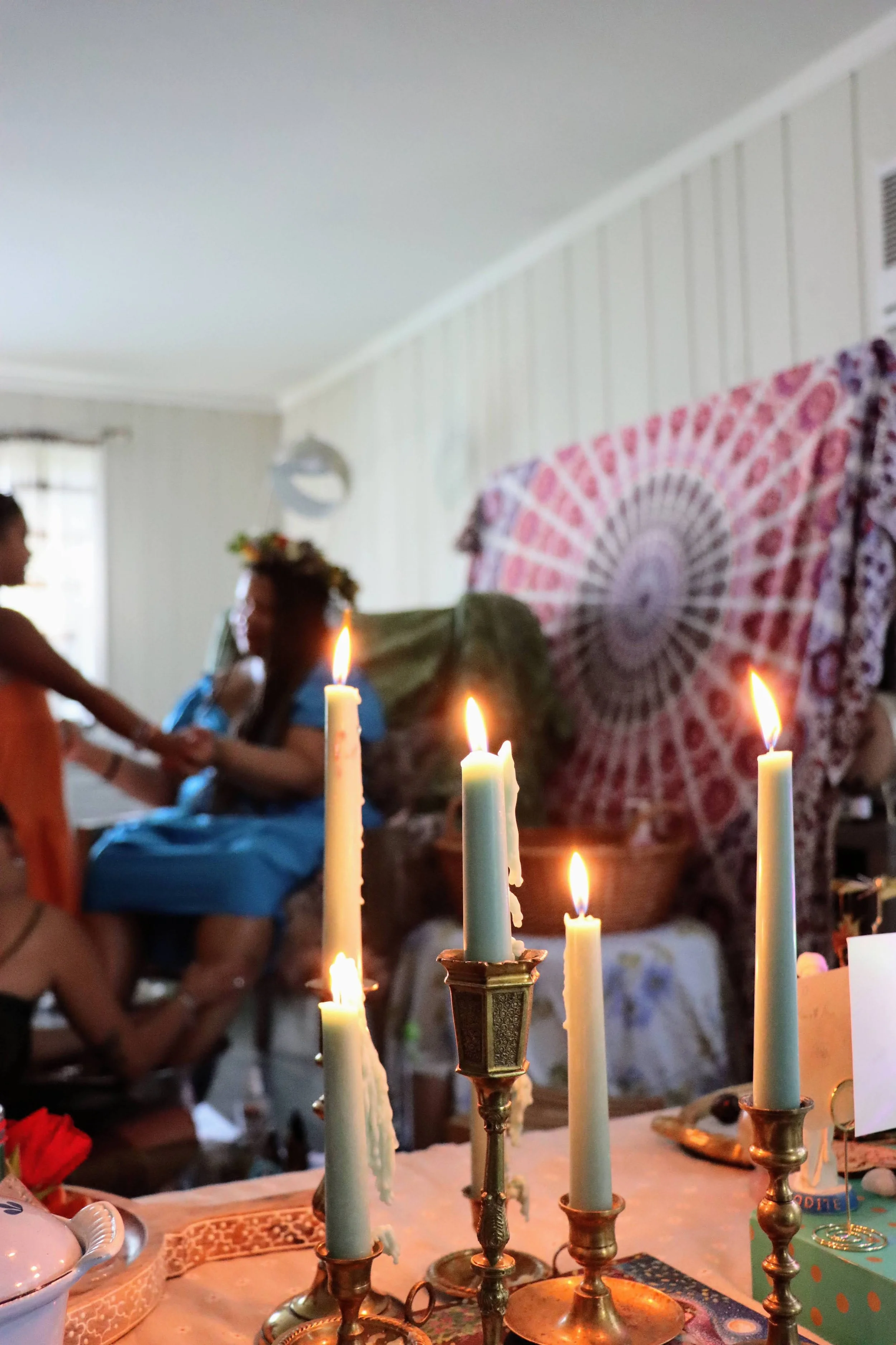 Elisabeth brings all ceremony supplies including but not limited to candles, incense, essential oils, music, lotion, paper and pencils, art supplies, printed readings. The host and guests are also very welcome to contribute additional supplies for the altar and ceremony. The supplies included will depend on what activities you have selected with Elisabeth for this circle.
