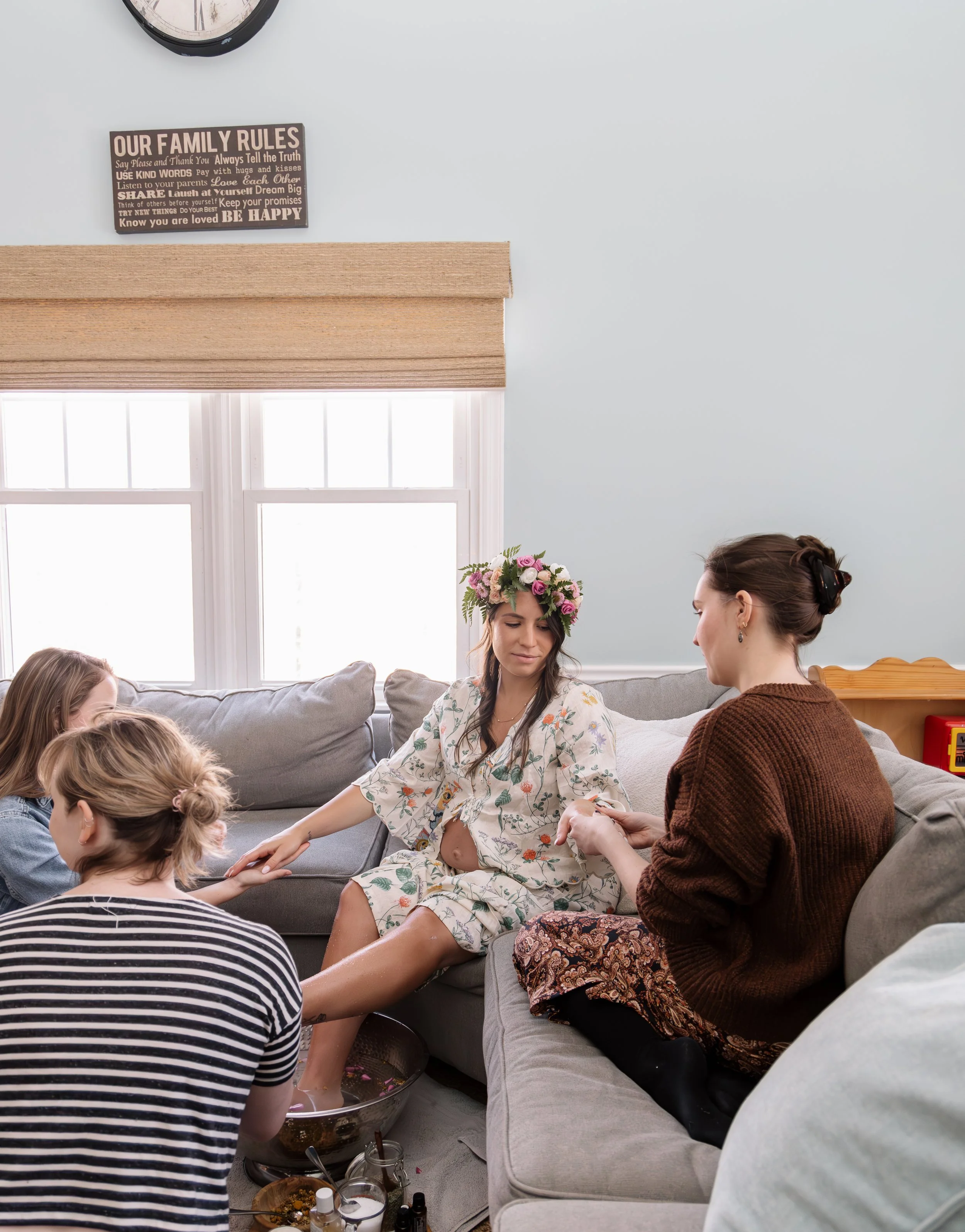 Includes up to 8 guests plus Mama, however additional guests are welcome at $25/person. Mamas are encouraged to keep the circle intimate, inviting only the closest women in her life. Men are not included in mother blessings because the focus is on the sacred feminine. Young children are also typically not a part of ceremonies, however this is subject to your discretion.